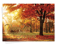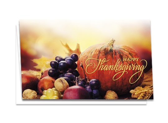 Business Thanksgiving cards make a favorable impression on clients and employees. It's the perfect season to express appreciation, and your mailing will be the first holiday sentiments of the season to reach clients and employees