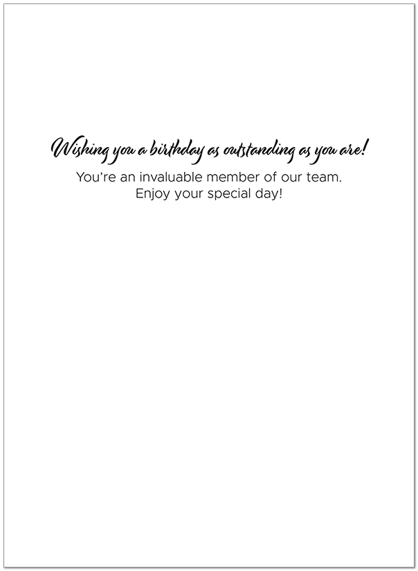 Interior Text: Wishing you a birthday as outstanding as you are! You're an invaluable member of our team. Enjoy your special day!