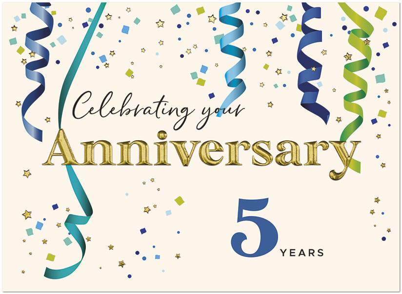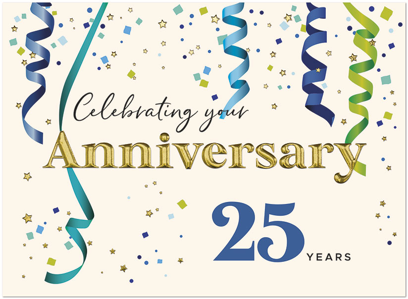This anniversary card can be customized to celebrate employee milestone anniversaries. The elegant confetti design features gold foil embossing on vanilla FSC® paper. Choose from 1,5,15,20,or 25 years.