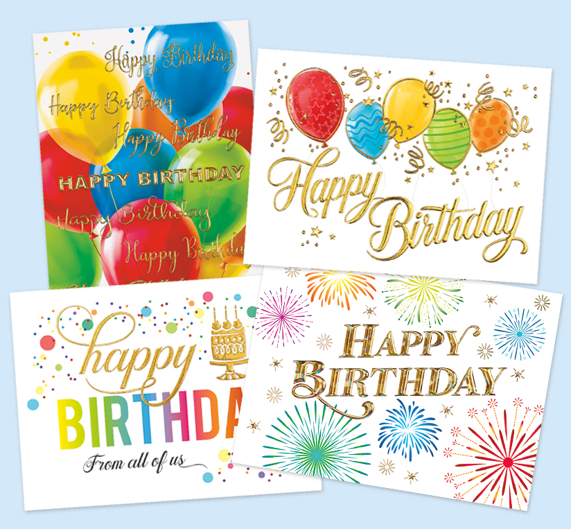 This assortment pack features 4 Premium Foil Birthday cards to make employees feel valued and appreciated. Contains 50 cards with 35 white envelopes and 15 gold envelopes.