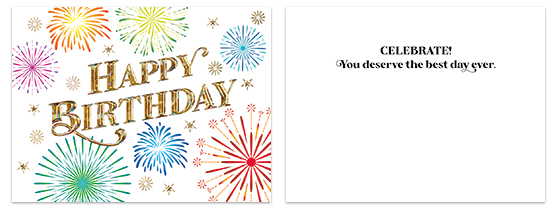 15 - Birthday Fireworks A2906U (7.5" x 5.5") Features a colorful fireworks design with gold holographic foil embossing. Verse: Celebrate! You deserve the best day ever.